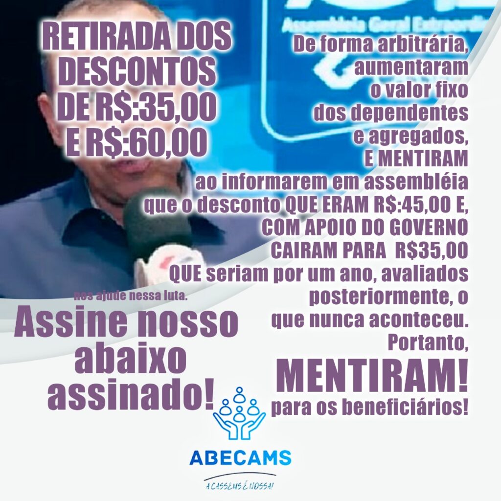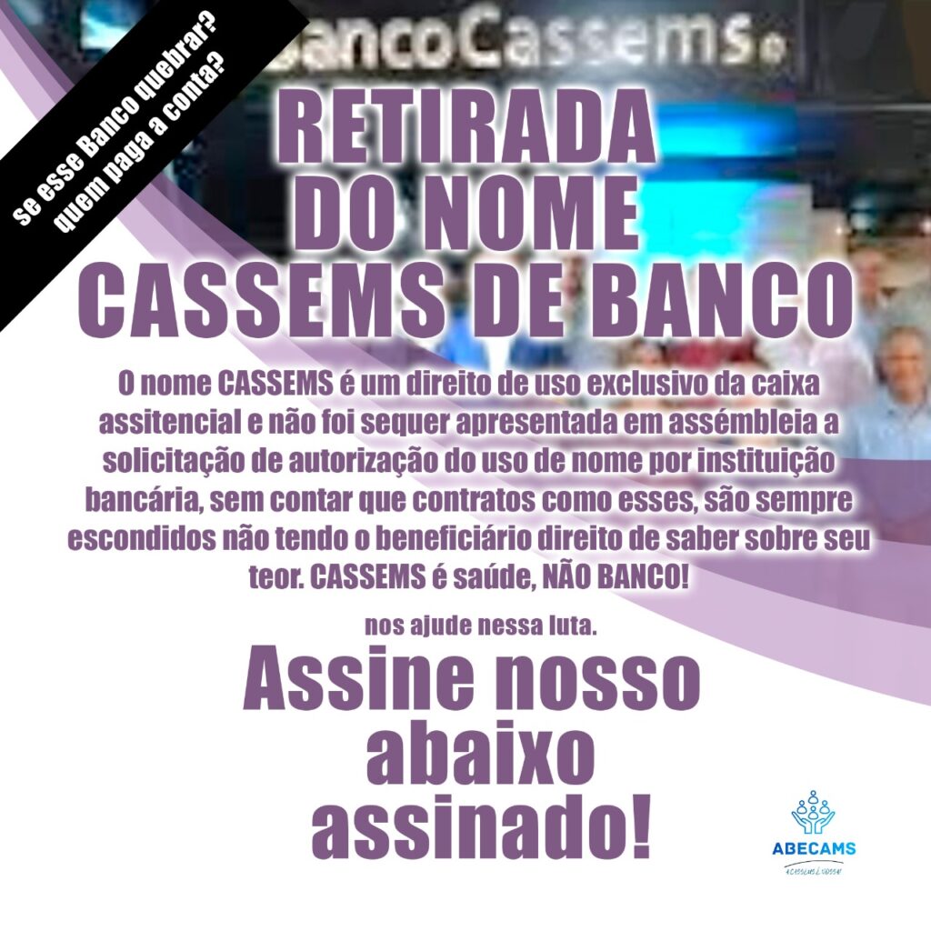 Você beneficiário CASSEMS, descontente com a situação em que a atual gestão chegou, estamos iniciando uma campanha em respeito aos beneficiários.